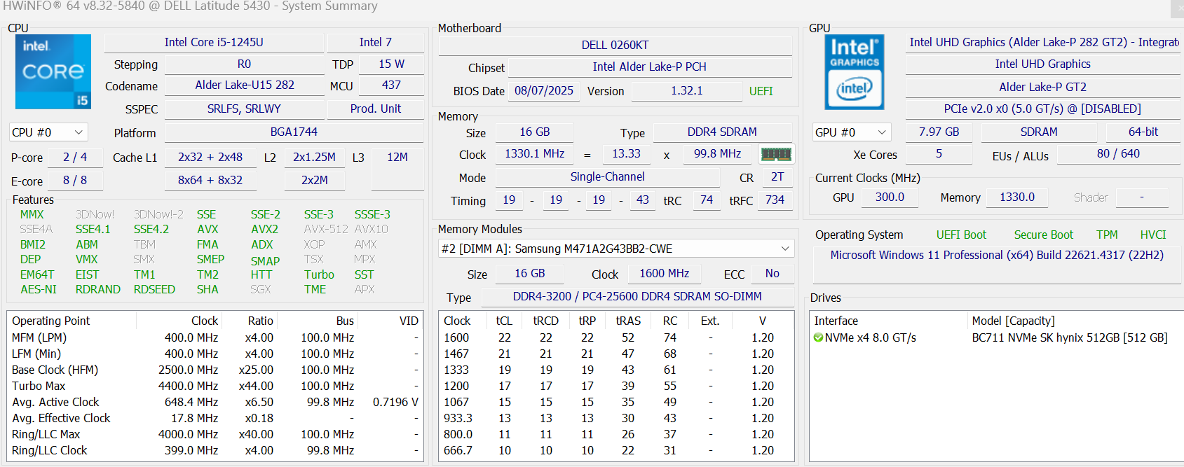 - Intel Core i5-1245U (i5 gen 12)