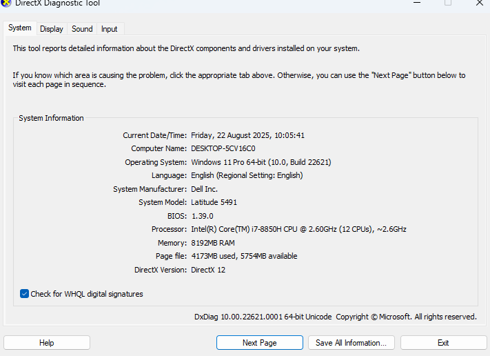 Dell Latitude 5491 Intel Core i7 Gen 8H RAM 8GB SSD 128GB