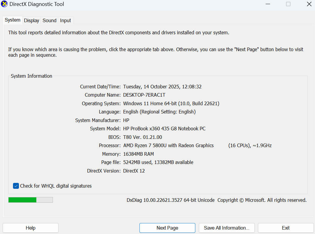 - AMD Ryzen 7 5800U (8 Core 16 Threads)