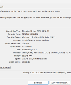 - Intel Core i7-10510 (i7 gen 10)