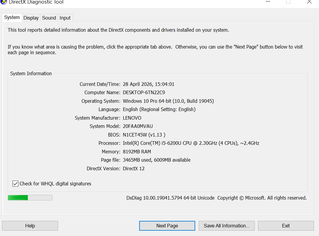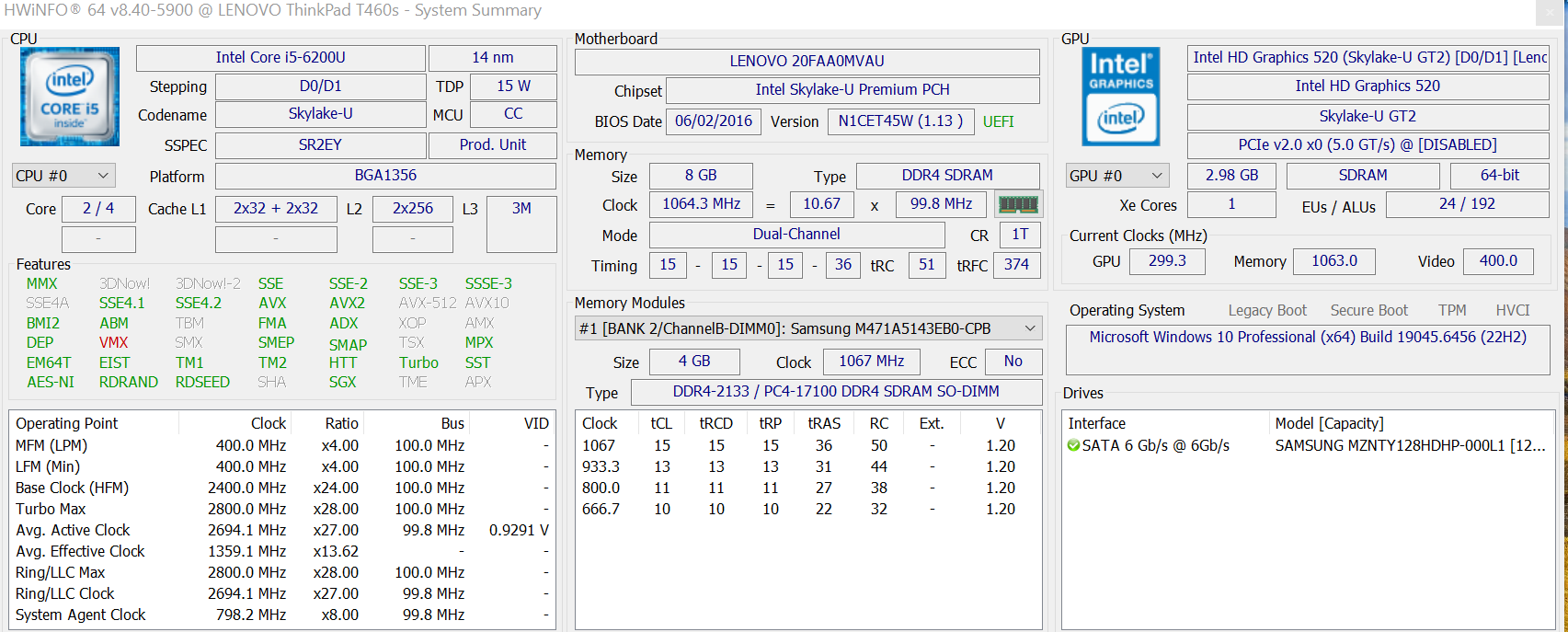• Intel Core i5-6200U (i5 gen 6)