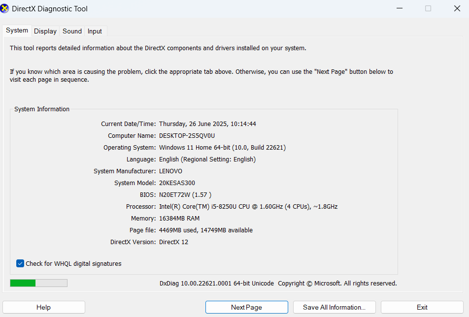 - Intel UHD 620 Graphics
