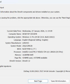 • VGA Intel UHD 620 Graphics