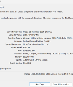 - Core i7-8550U (i7 generasi 8)